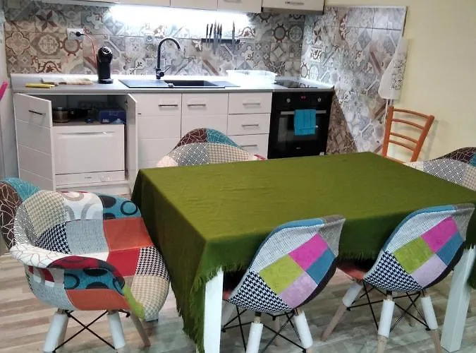 The 72 m^2 Tihoto Myasto Apartment features views of the garden and is situated about 25 minutes' walk from Kilometre Zero. Guests can make use of Wi-Fi, car rental options to explore the local area.